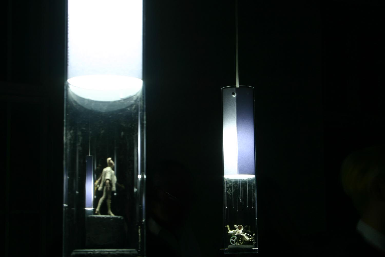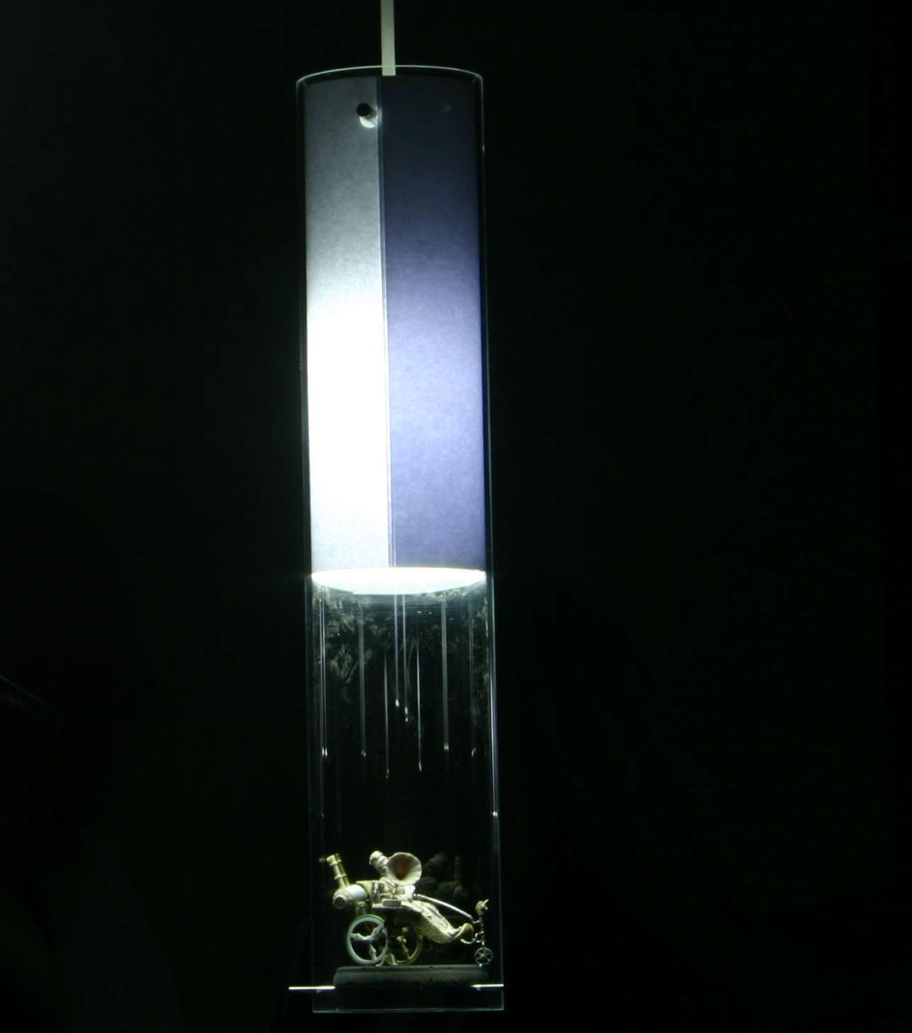 Material: Plexiglasrohr, Beton, Stahlstifte, Licht, Papier